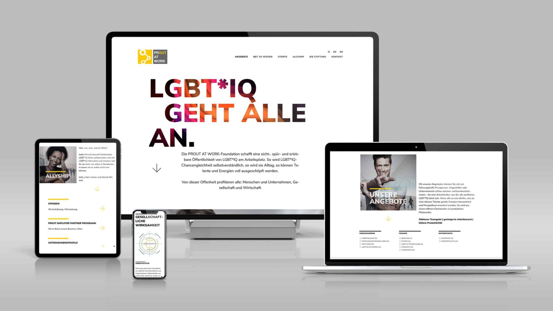 Für die PrOut@Work-Foundation haben wir einen informativen Webauftritt realisiert, der die wichtige Arbeit der Stiftung für LGBTIQ+ am Arbeitsplatz präsentiert. Die Website informiert über Initiativen, Events und Mitgliedschaften.