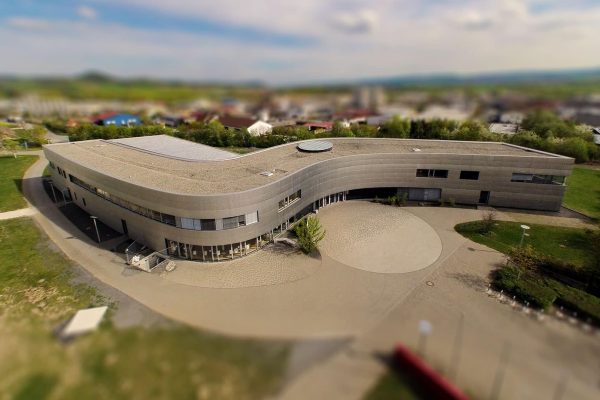Professionelle Drohnenaufnahmen des renovierten Schulgelaendes für die Öffentlichkeitsarbeit.